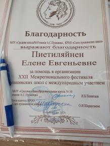Перед этим Елена Евгеньевна в качестве почетного гостя приняла участие в открытии XXII Межрегионального Пушкинского фестиваля, которое состоялось в Администрации Петрозаводска. Это традиционное ежегодное мероприятие «Союза пушкинских школ». Тематические мероприятия пройдут с 23 по 25 марта в школе №10 имени А.С. Пушкина.